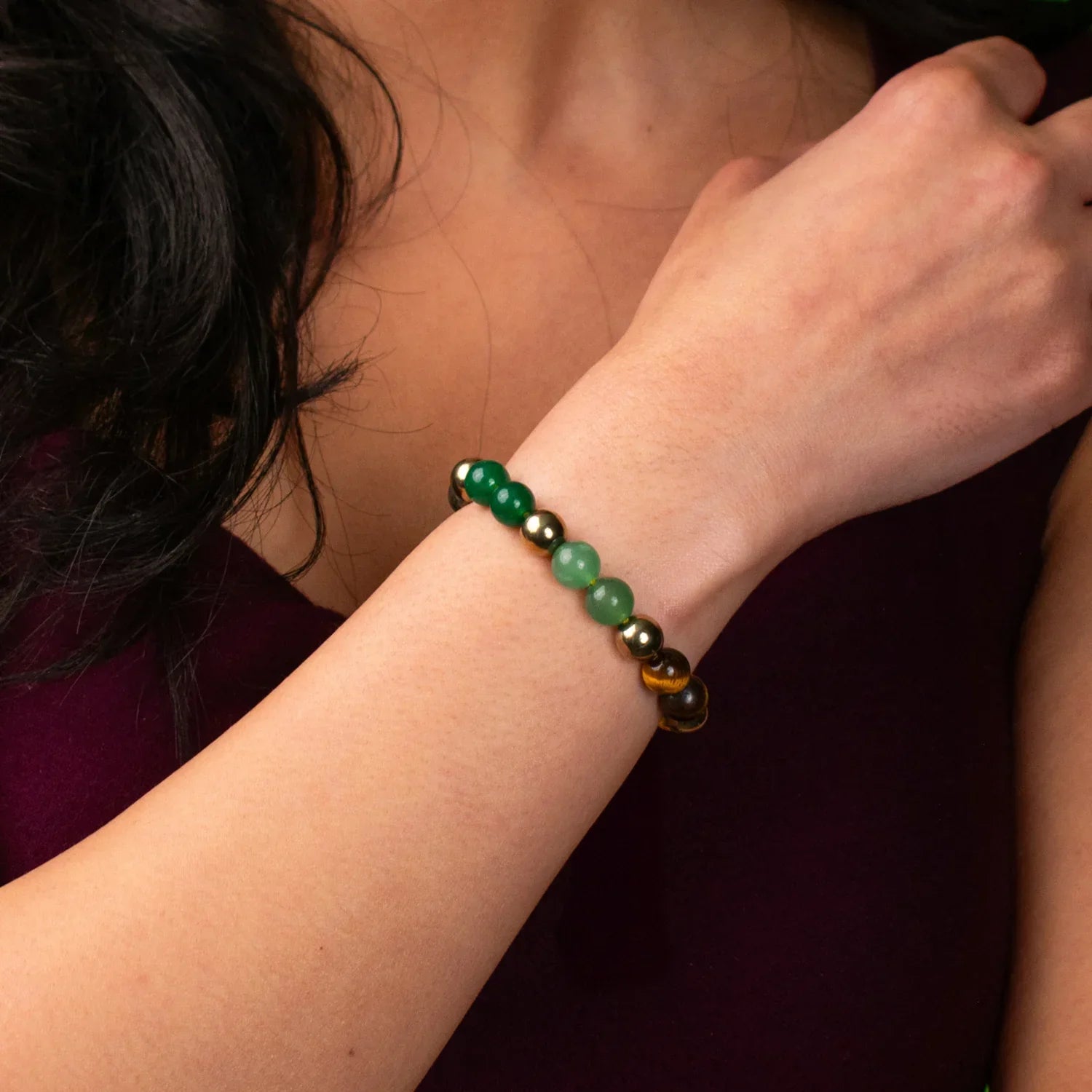 The Adjustable Dhan Yog Bracelet is made with powerful crystals—Citrine, Quartz, Tiger Eye, Green Aventurine, Pyrite, and Hematite. Each stone in this bracelet has its own unique power. Citrine is known for attracting money and success. Quartz gives peace and clears the mind. Tiger Eye boosts courage and helps you make smart decisions. Green Aventurine brings good luck and supports growth in life.