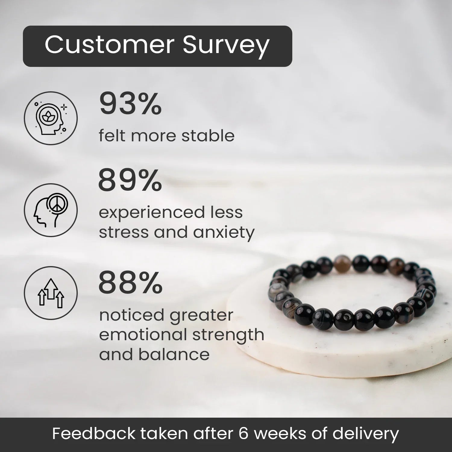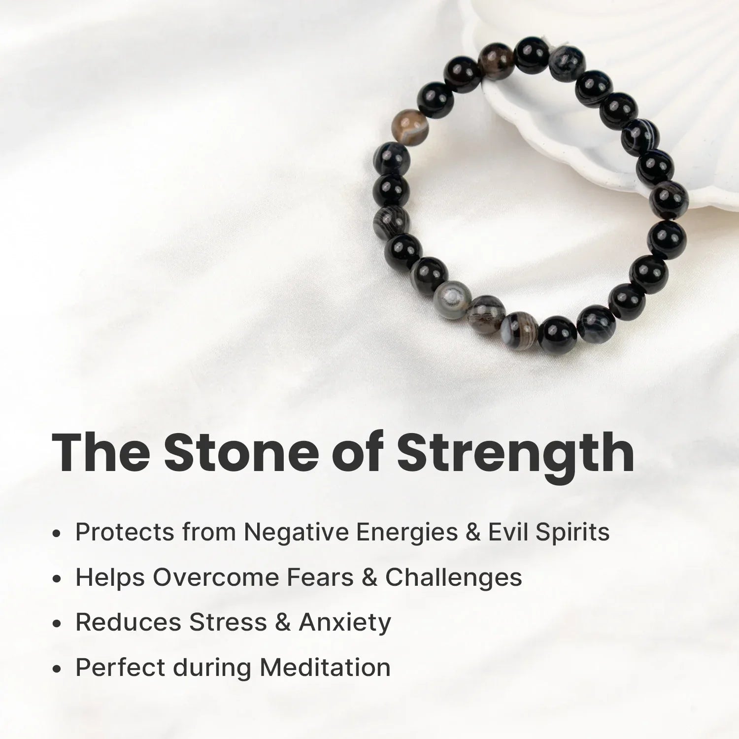 The Black Agate Bracelet is known as the Stone of Stability. It helps you stay calm even when life gets stressful, and it keeps your mind steady so you don’t feel anxious or confused.