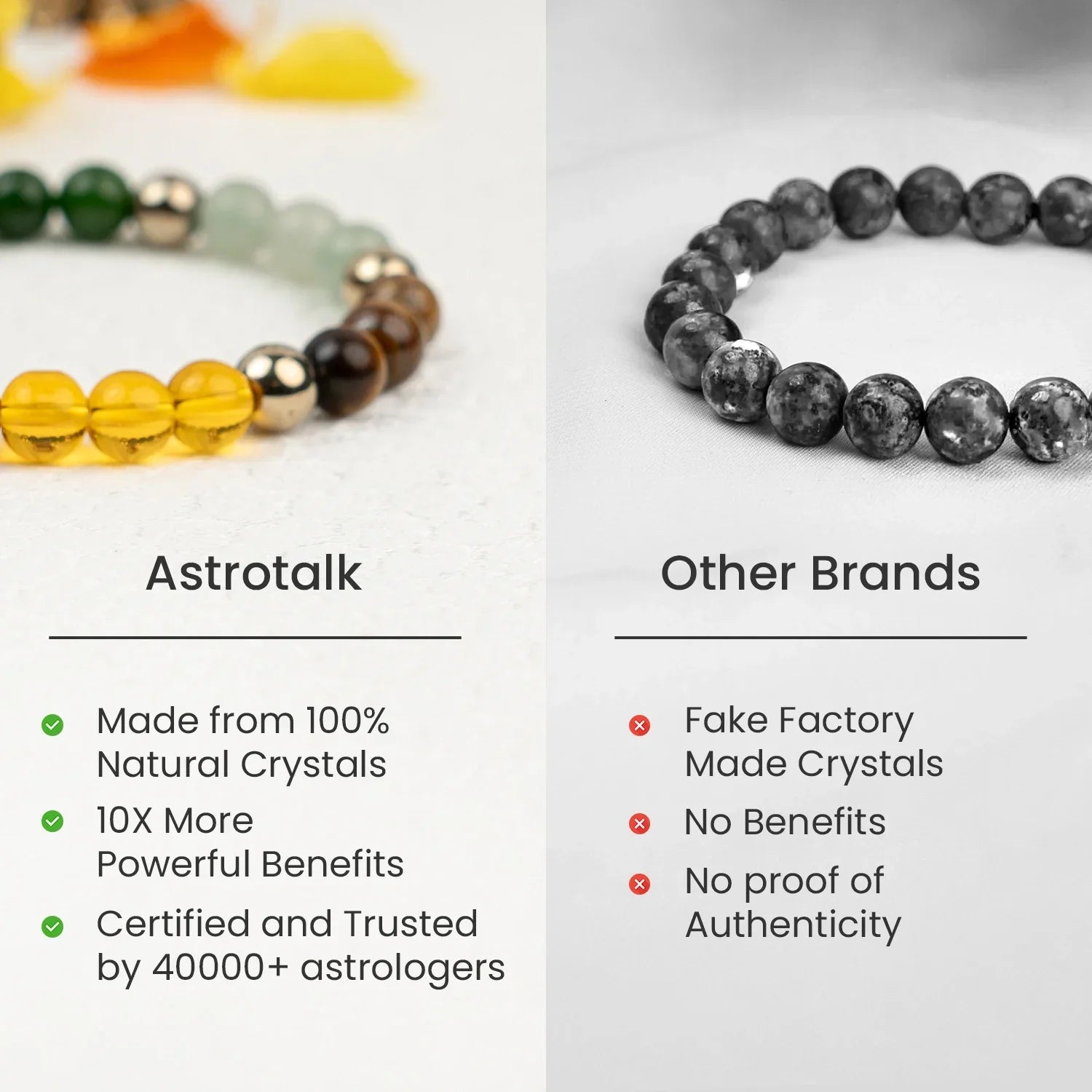 The Dhan Yog Bracelet helps enhance career growth, business success, and good fortune using powerful crystals.