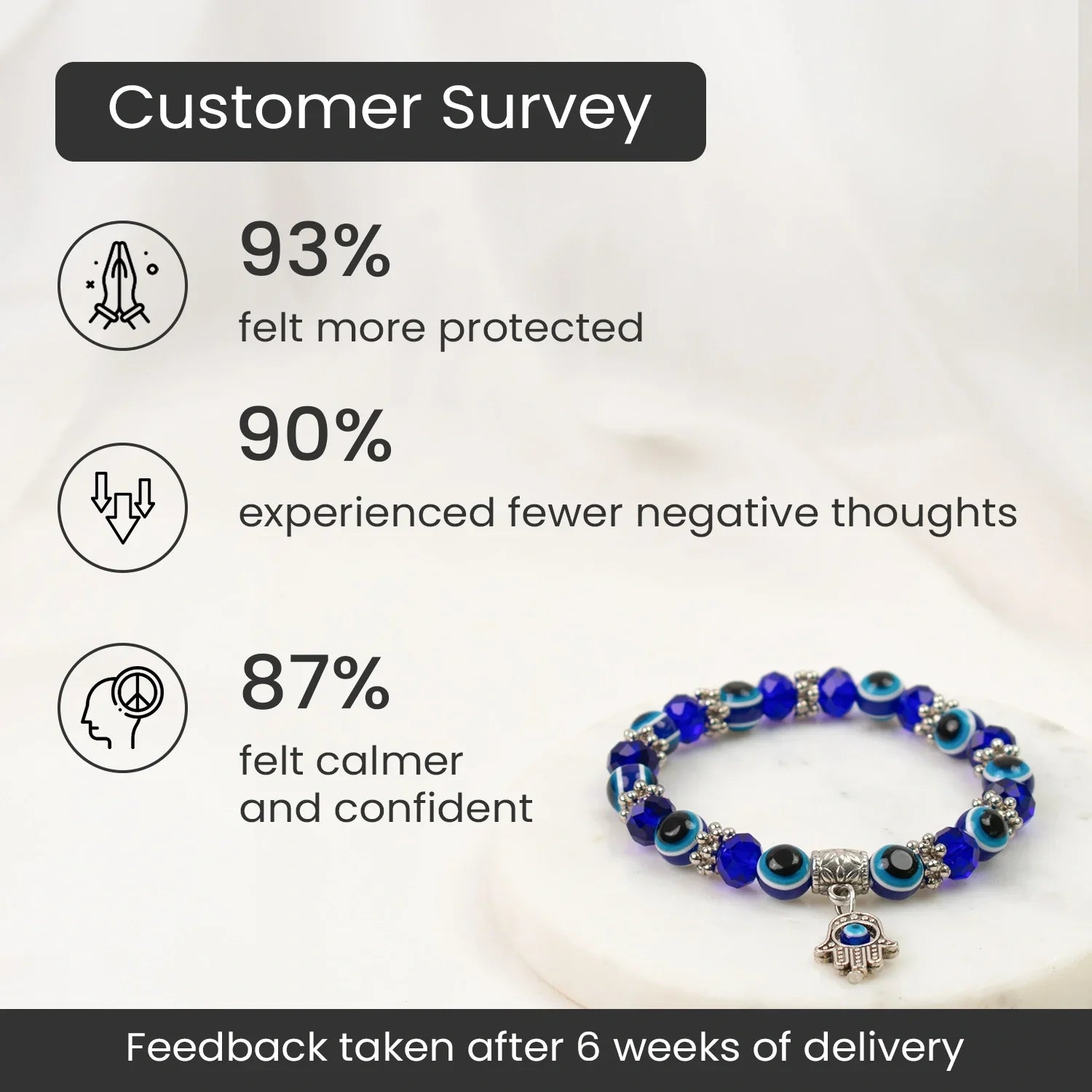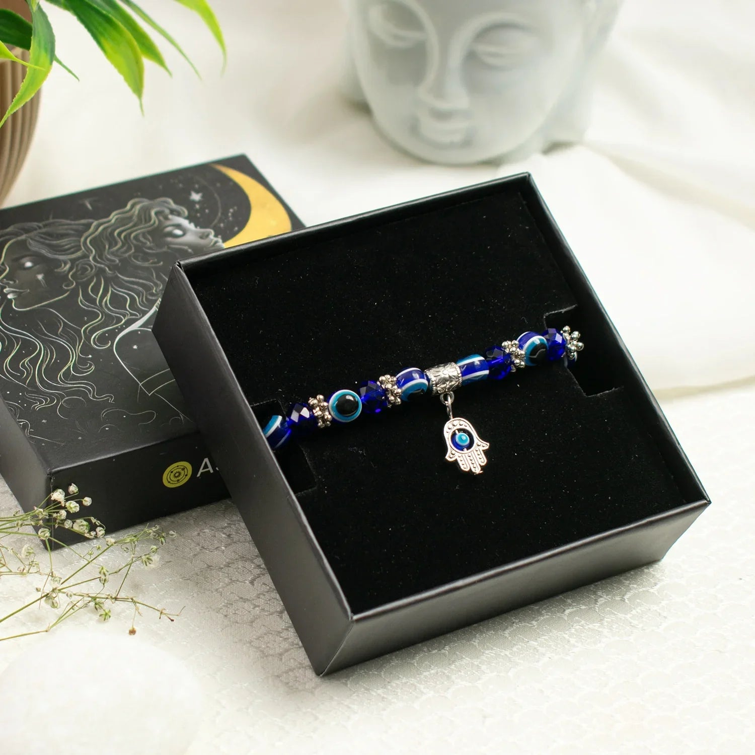 The bracelet comes with a beautiful Hamsa Hand charm that adds extra protection and good luck. You can wear it every day at home, the office, or while travelling. It looks stylish with both casual and traditional outfits. If you want peace, safety, and good vibes in your life, this Evil Eye Bracelet is the perfect choice for you.