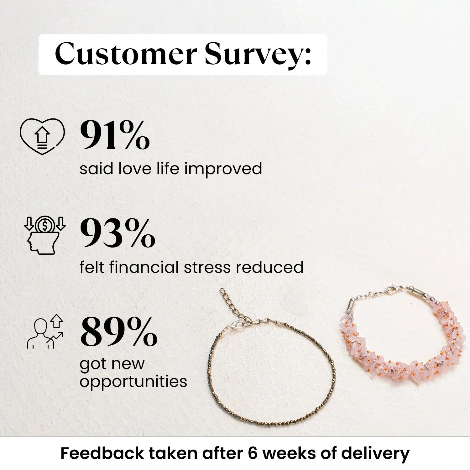 This combo comes with a FREE Rose Quartz Chips Bracelet, the ultimate crystal of love and emotional healing. Rose Quartz opens the heart chakra, promotes self-love, and attracts harmonious relationships. Together, pyrite and rose quartz create the perfect balance of wealth, success, and emotional peace.