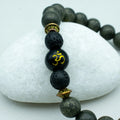 The Raw Pyrite Bracelet with Om Bead attracts wealth, positivity, and divine blessings. Made with 100% original Raw Pyrite, it helps draw money, success, and confidence. The Black Obsidian Om bead connects you to Lord Shiva’s energy, offering peace and protection. Two lava beads bring grounding and calmness, keeping your mind balanced. This bracelet is a perfect mix of prosperity and spirituality — ideal for those seeking financial growth, emotional peace, and positive energy in everyday life.