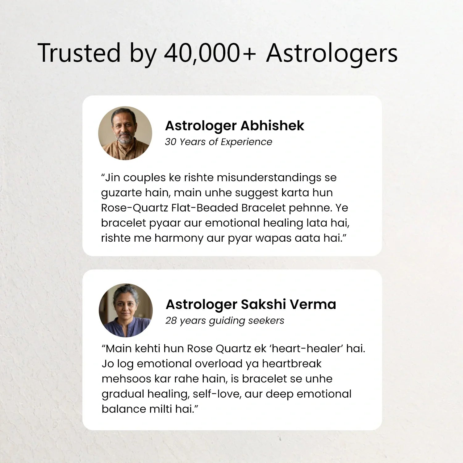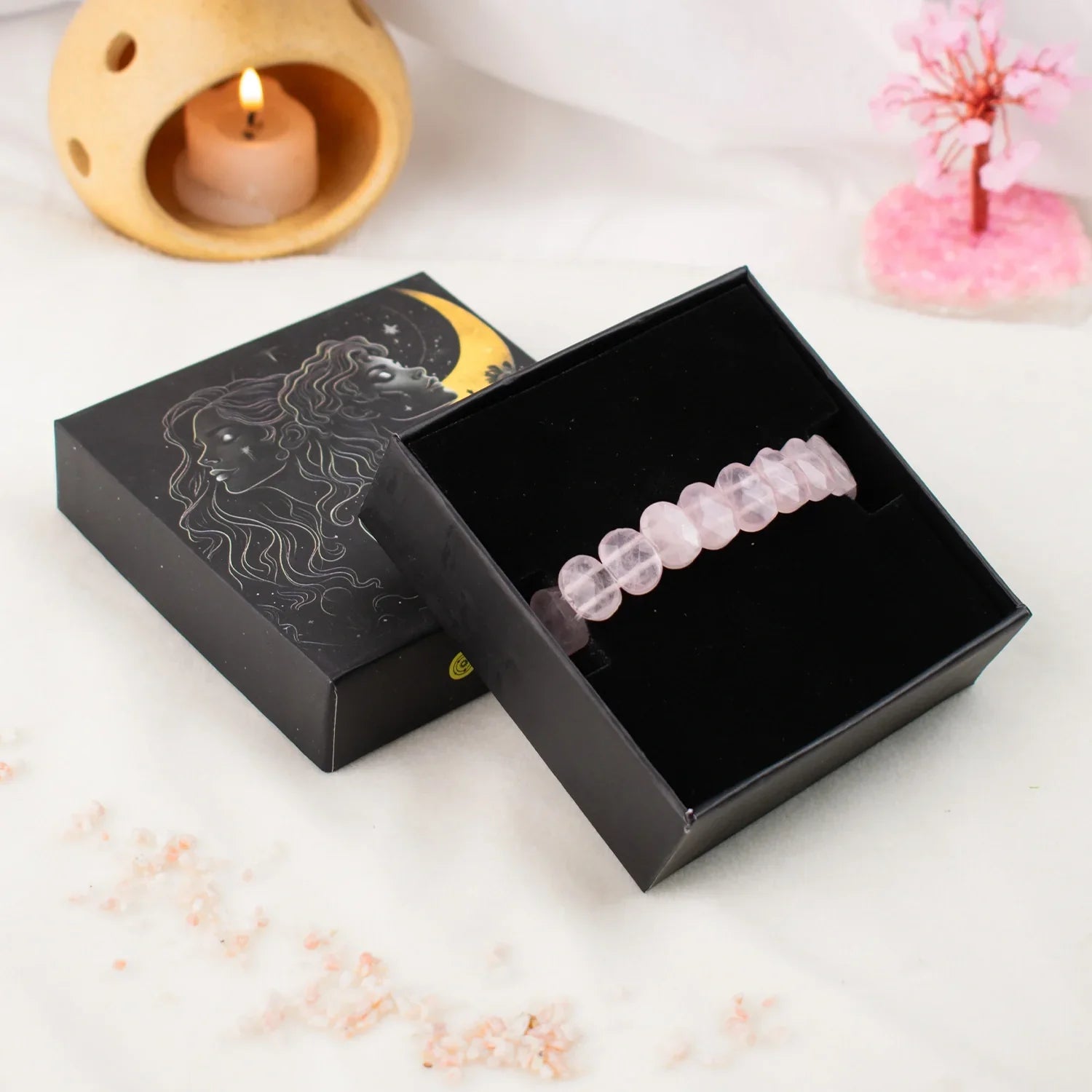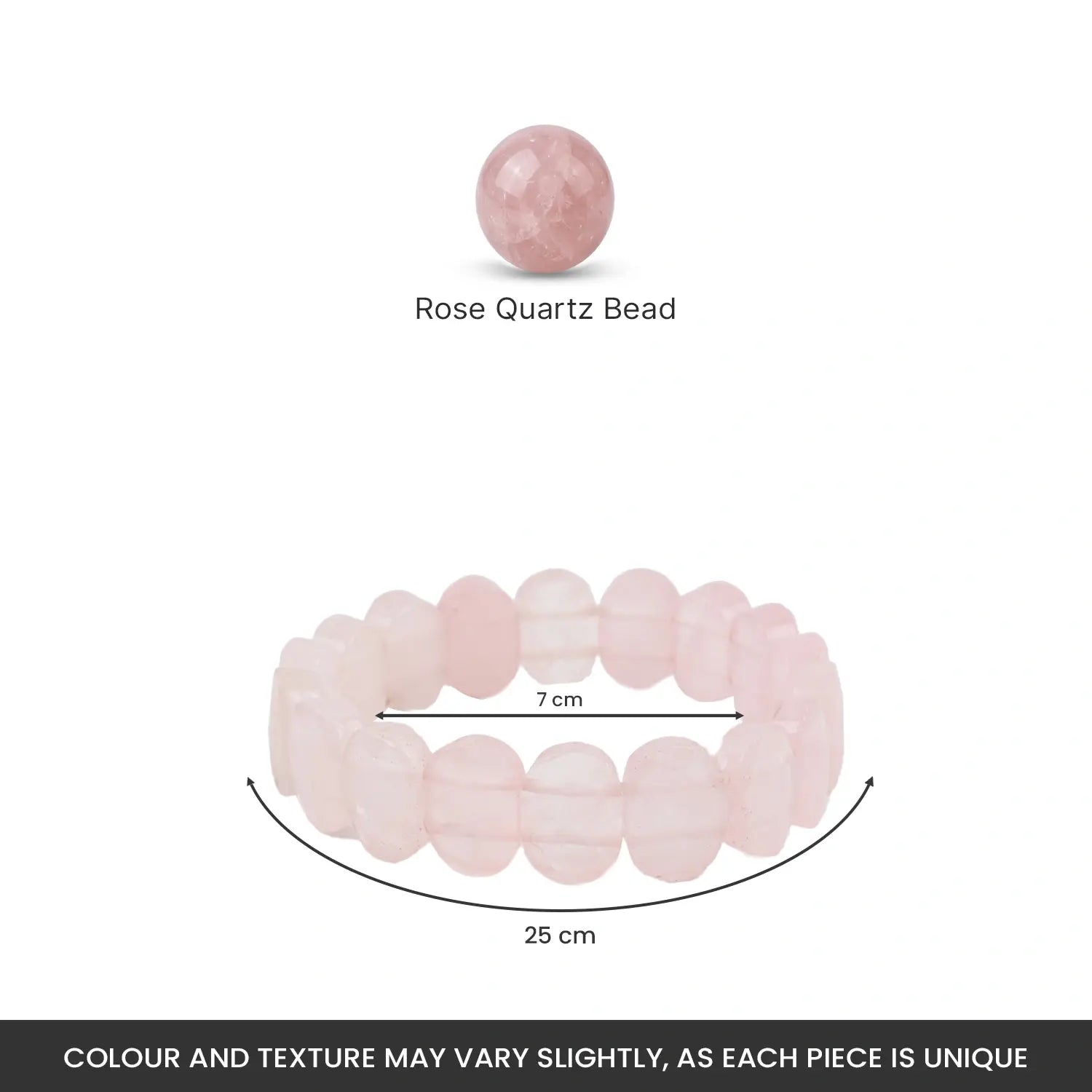 The Rose Quartz Flat-Beaded Bracelet is crafted with rose quartz stones, famously known as the “Stone of Love.” Rose quartz has long been cherished for its gentle, comforting energy. It appeals to the heart and emotions, making it one of the most beloved crystals for emotional healing and personal well-being.