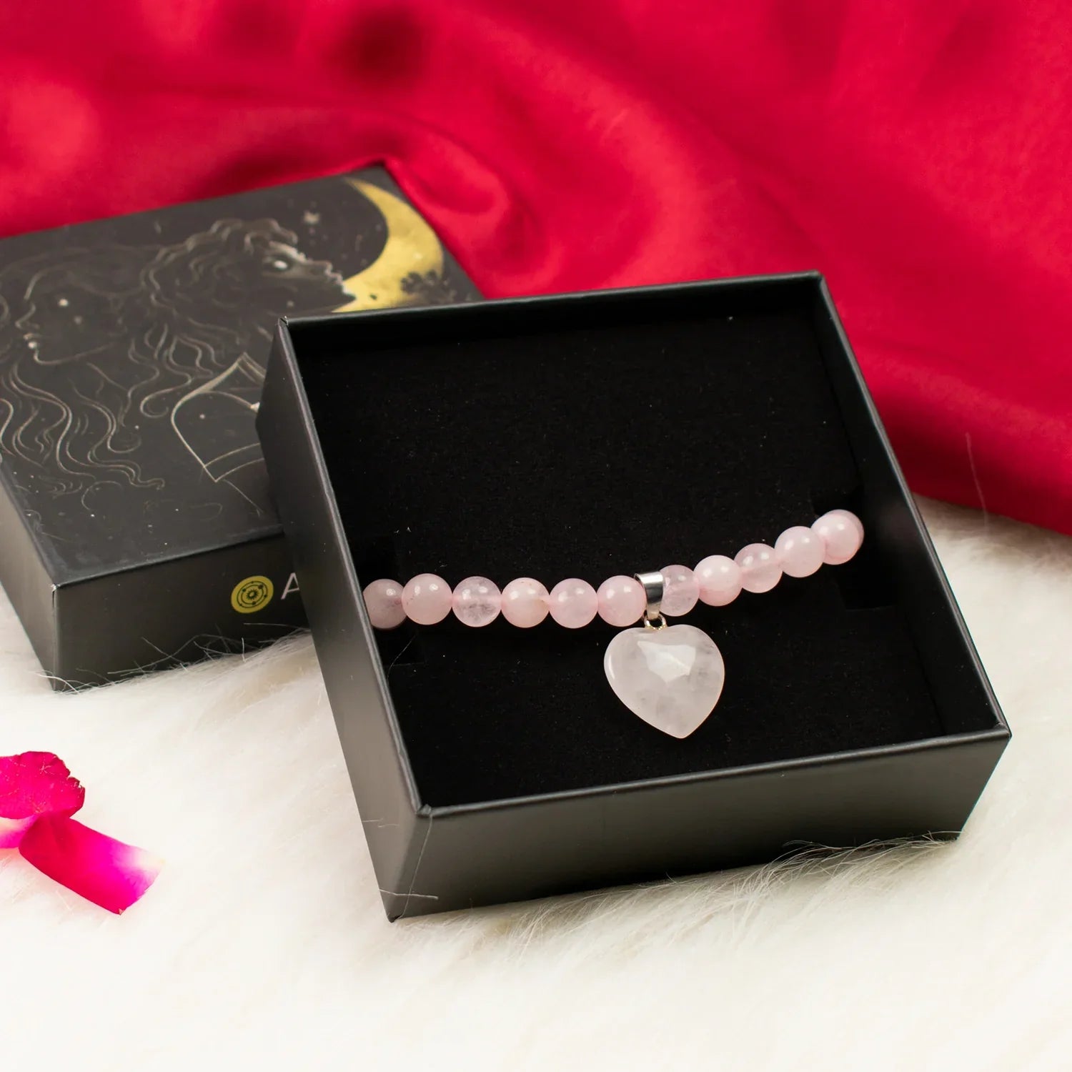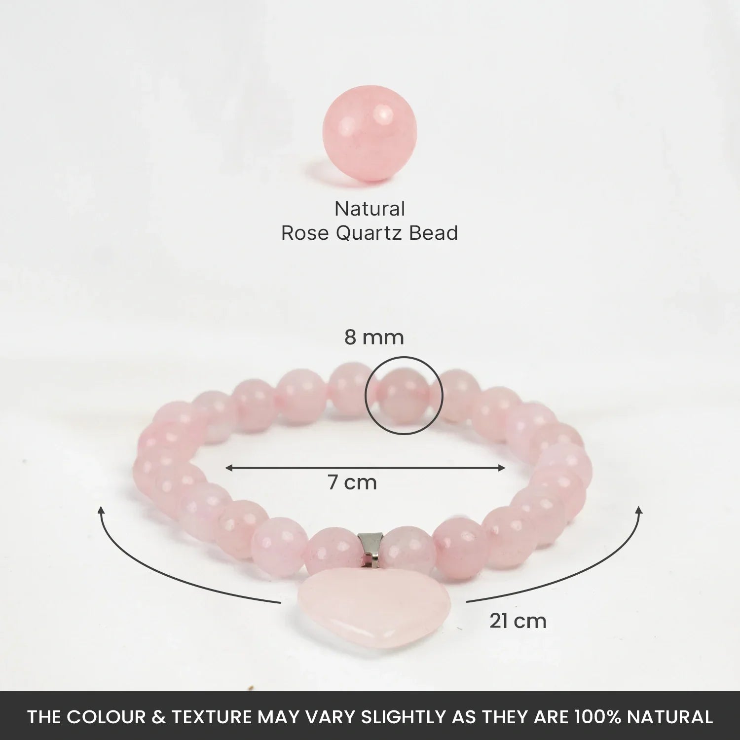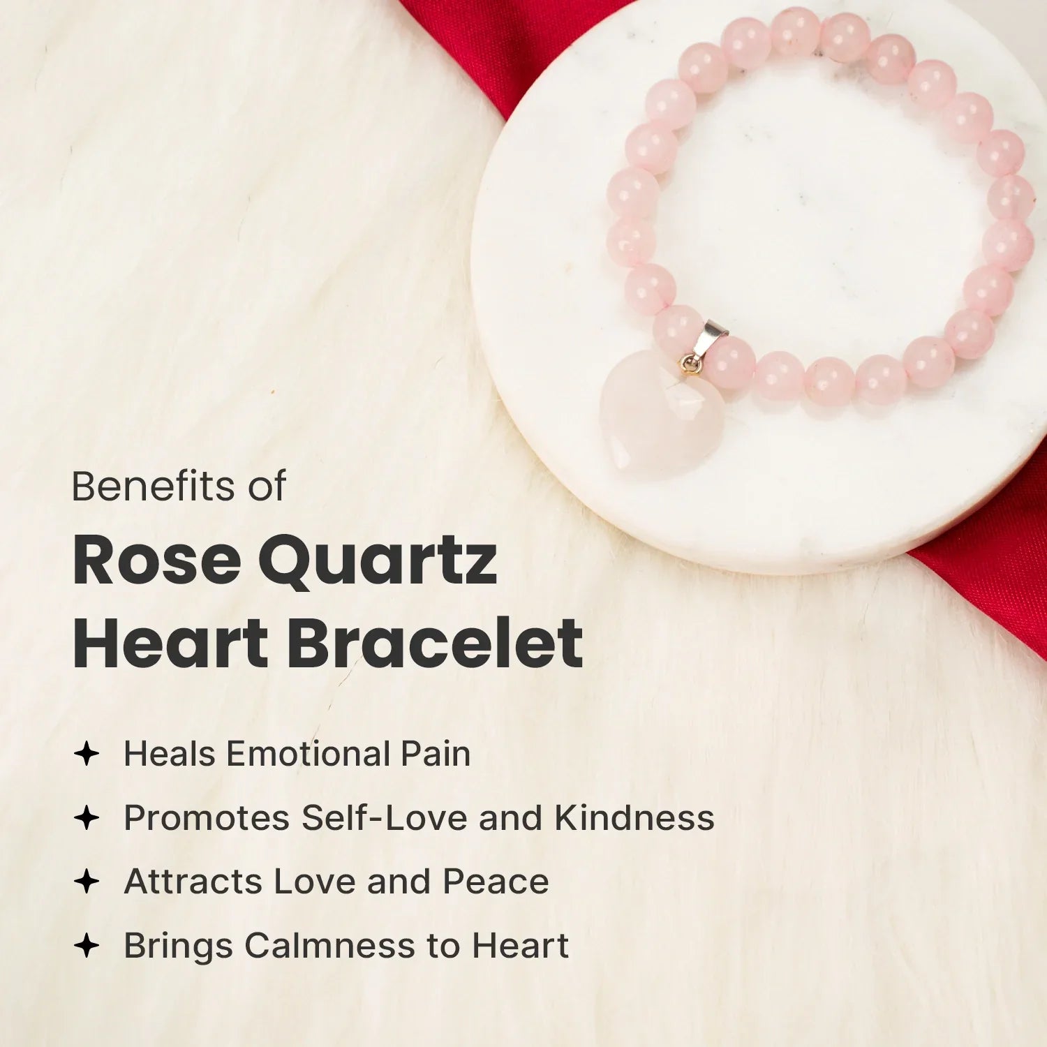 Love Attraction Heart Bracelet made from Rose Quartz Stone which is also called Stone of Heart or Love Stone balances & opens the heart chakra with soft, loving, nurturing vibrations of unconditional love. Whether it is your ex or a new crush, watch the magic as you wear it.