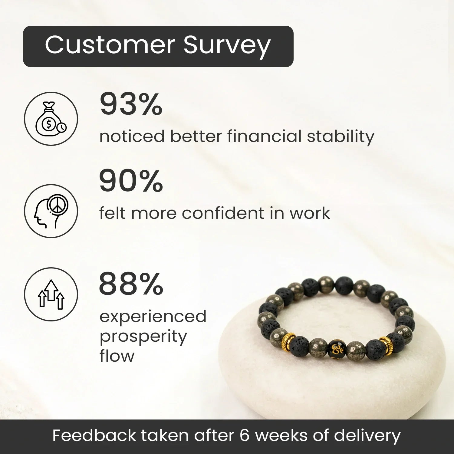 Bring both money and peace into your life with the Wealth OM Bracelet. This beautiful bracelet combines the power of Raw Pyrite, known for attracting wealth and success, with lava beads that promote calmness and peace. The Om bead helps you stay focused and balanced throughout the day. Together, they create a perfect mix of prosperity and positivity. Wear it daily to attract good fortune, reduce stress, and keep your energy grounded. A simple yet powerful bracelet for wealth and peace.